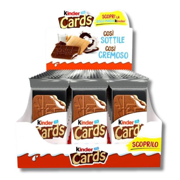Kinder Cards sono biscotti sottili con una cialda al cacao croccante e un ripieno cremoso al latte e cacao, ideali come snack da portare sempre con sé. Sono incartati singolarmente, pronti da gustare in qualsiasi momento.