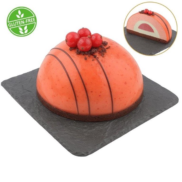 Delicata mousse alla fragola, con cuore morbido di cremoso al lampone. Porzione da 80gr SENZA GLUTINE